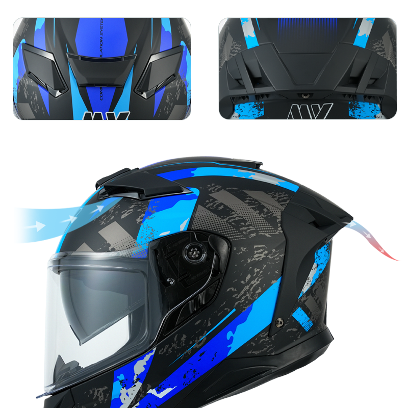 In conclusion, the MY Full Face Helmet for Motorcycle Matte Black/Blue FF939 is the ultimate motorcycle full face helmet for riders who demand the best in safety, comfort, and style. Whether you're a seasoned rider or a weekend warrior, this full face helmet motorcycle is designed to meet your needs and exceed your expectations. Ride with confidence and experience the difference with MY Helmets, where innovation meets craftsmanship.